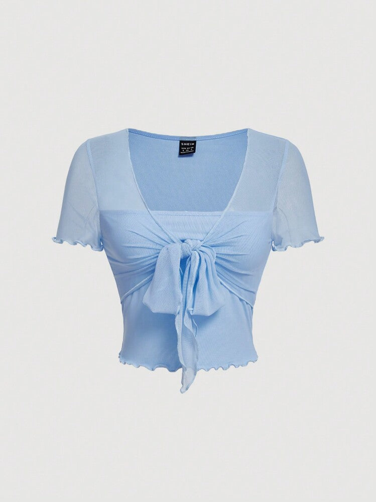 Introducing the Joe tie up top in baby blue. Made with high-quality materials, this top is both stylish and versatile. Perfect for any occasion, it can be dressed up or down. Experience the comfort and elegance of the Joe tie up top in baby blue.